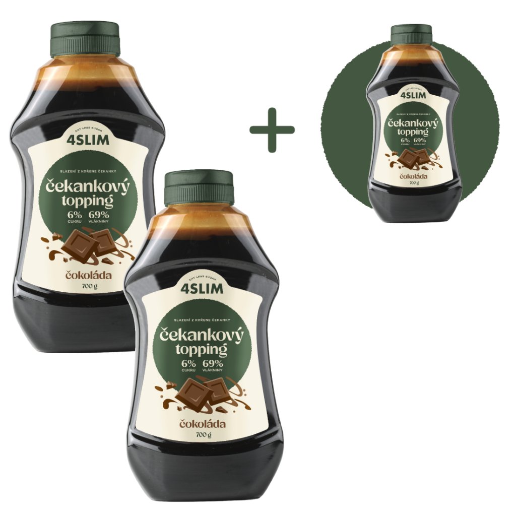 Čakankový topping 4slim, to je sladká, hustá Low Carb poleva, ktorá sa môže pýšiť nízkym obsahom cukru a tuku, na rozdiel od iných toppingov. Je úplne bez gluténu, bez laktózy, bez konzervačných látok, s vysokým obsahom vlákniny a so zníženou energetickou hodnotou, vegan OK. Preto je vhodná pre všetky druhy diét.