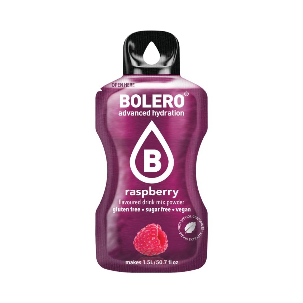 Nealkoholický nápoj v prášku s malinovou príchuťou, so sladidlami. BEZ UMELÝCH FARBÍV A ARÓM. Bolero je originálna a široko použiteľná zmes. Dá sa mixovať s vodou, mliekom, čo je obľúbené najmä u detí a dokonca aj s alkoholom, čo majú v obľube dospelí. Návod na prípravu: obsah vrecka rozmiešajte v 1,5 l vody.