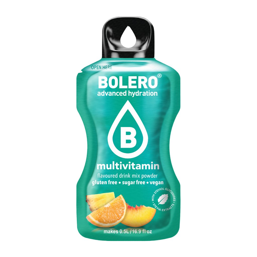 Nealkoholický nápoj v prášku s príchuťou tropického ovocia, so sladidlami. BEZ UMELÝCH FARBÍV A ARÓM. Bolero je originálna a široko použiteľná zmes. Môže sa miešať s vodou, mliekom, čo je obľúbené najmä u detí, a dokonca aj s alkoholom, čo obľubujú dospelí. Návod na prípravu: obsah vrecúška rozmiešajte v 1,5 litri vody.