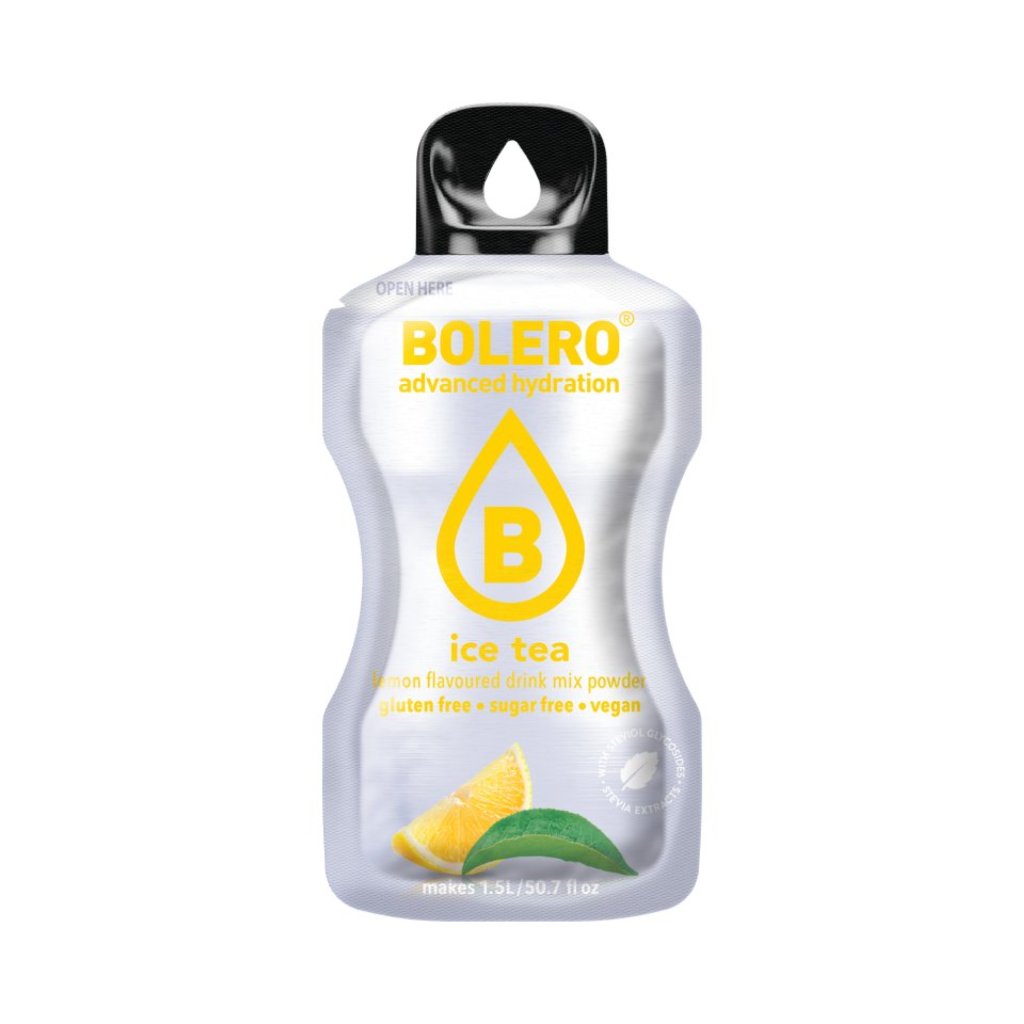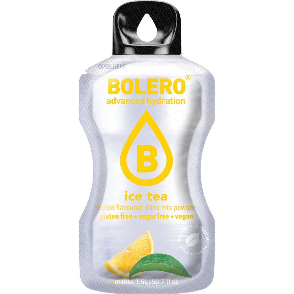Nealkoholický nápoj v prášku s extraktom z čierneho čaju s citrónovou príchuťou, so sladidlami. BEZ UMELÝCH FARBÍV A ARÓM. Bolero je originálna a široko použiteľná zmes. Môže sa miešať s vodou, mliekom, čo je obľúbené najmä u detí, a dokonca aj s alkoholom, čo obľubujú dospelí. Návod na prípravu: obsah vrecúška rozmiešajte v 1,5 litri vody.