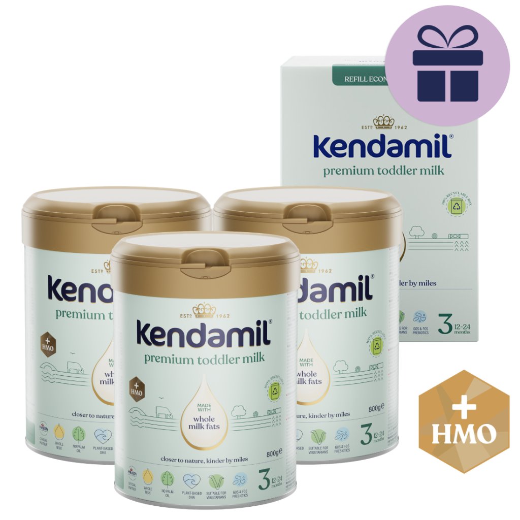 3x Kendamil Premium 3 HMO+ (800 g) + ZDARMA 600 g