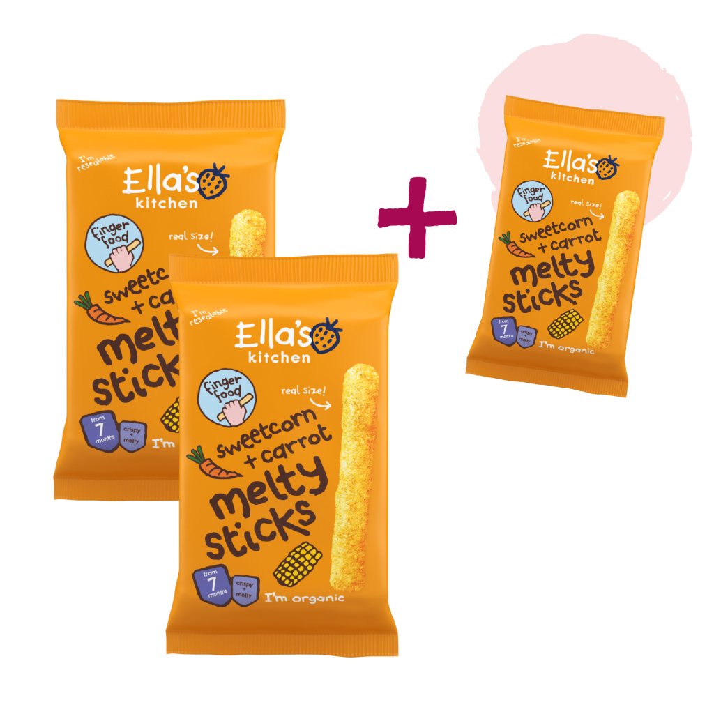 2+1 ZADARMO: Ella's Kitchen BIO Chrumkavé tyčinky s kukuričkou a mrkvou (16 g)
