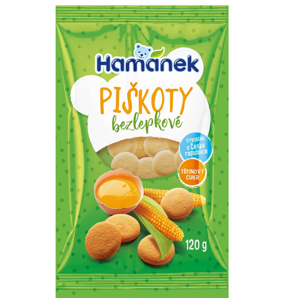 Hamánek Bezlepkové piškóty – jemné, krehké a bez lepku. Sú vyrobené z kvalitných surovín bez obsahu lepku, takže sú vhodné aj pre osoby s bezlepkovou diétou.