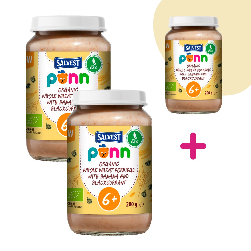 2+1 ZADARMO: SALVEST Põnn BIO Celozrnná kaša s banánom a čiernou ríbezľou (200 g)