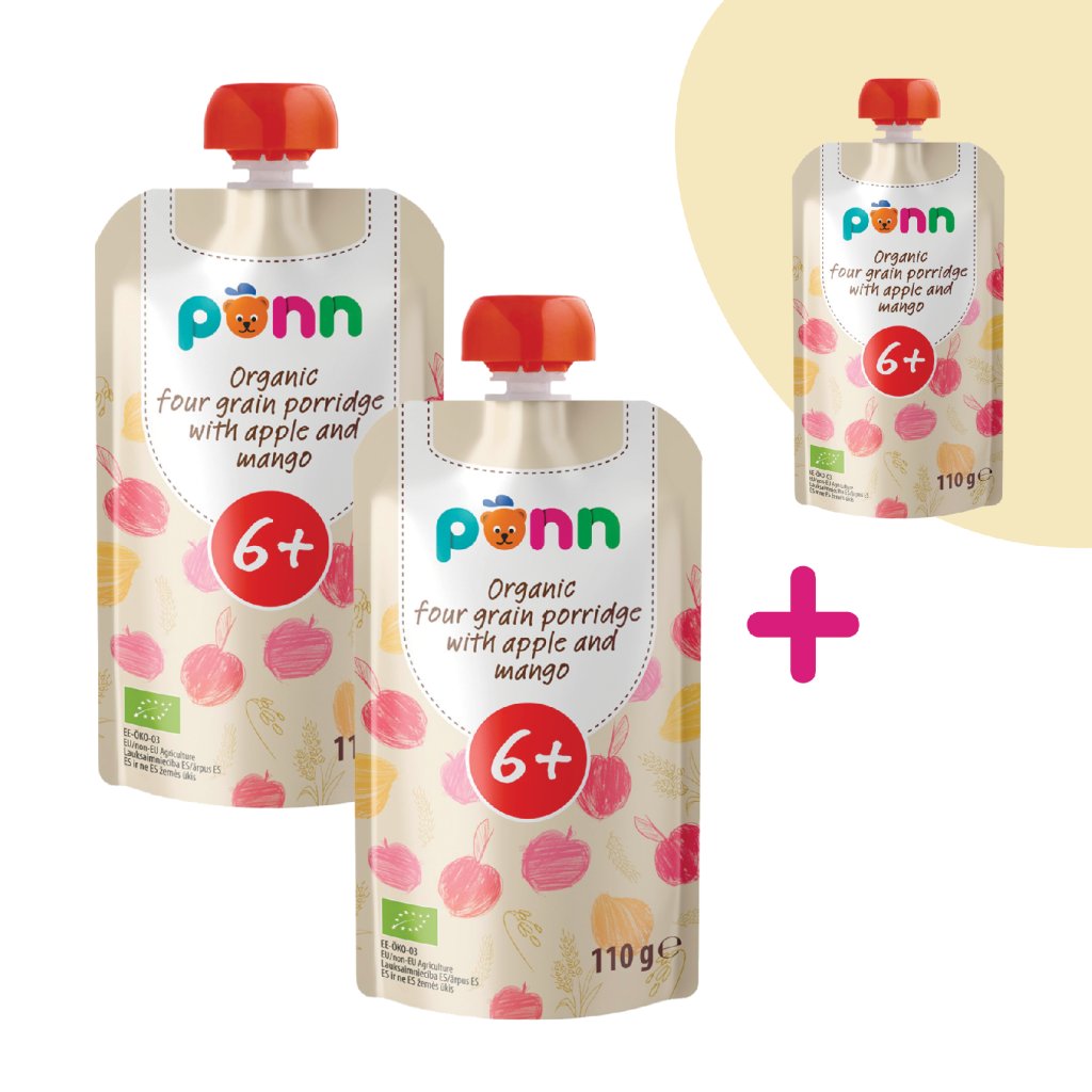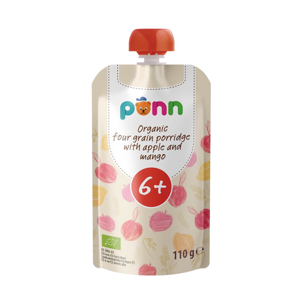 Praktická kapsička obsahuje spojenie starostlivo vybraných cereálií a lahodného ovocia. Celozrnné vločky tvoria raž, ovos, pšenica a jačmeň, ktoré pochádzajú z ekologického poľnohospodárstva a ktoré v nej zaisťujú porciu vlákniny pre bezproblémové trávenie. Skvelú chuť dotvára pyré z jabĺčok a manga.