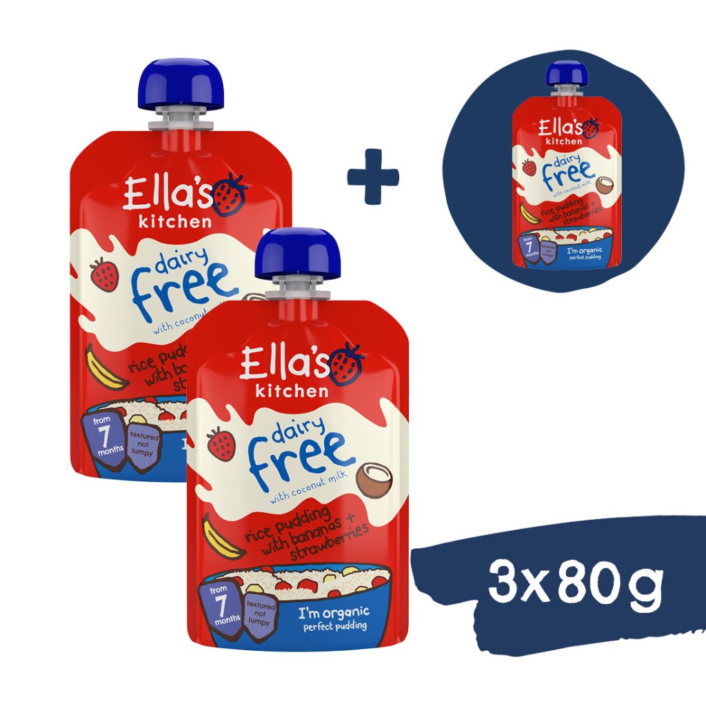 2+1 ZADARMO: Ella's Kitchen BIO Nemliečny ryžový nákyp s banánmi a jahodami (80 g)