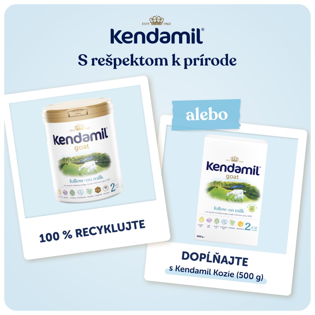 Ak je vaše dieťa zdravé a dobre prospieva, bude mu vyhovovať klasická rada Kendamil aj rada BIO Nature. Kendamil Kozie je alternatívou pre deti, ktoré majú citlivejšie bruško. Kozie mlieko prirodzene obsahuje vysoký podiel A2 beta-kazeínu, vďaka ktorému sa v žalúdku tvorí jemnejšia hmota, ktorá je stráviteľnejšia ako A1 beta-kazeín.
