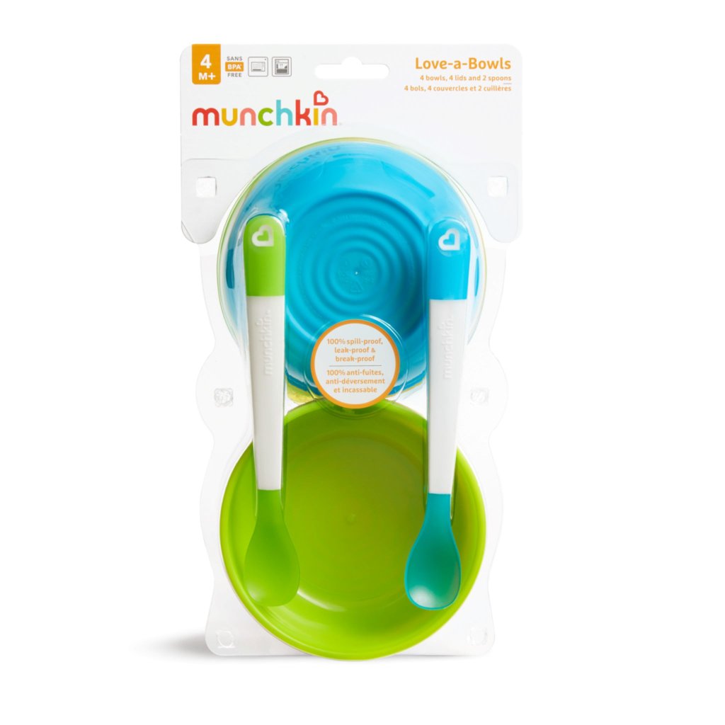 Keď deti prechádzajú z fliaš na pevnú stravu, zdá sa, že nikdy nie je dostatok misiek na uspokojenie ich rastúcich potrieb - alebo na zvládnutie nevyhnutného neporiadku. Aspoň zatiaľ. Naše misky Love-a-Bowls majú 100% záruku, že sa nerozlejú, nevytečú ani nerozbijú. Môžete si byť istí, že ich použitie je bezpečné prakticky kdekoľvek, vrátane mikrovlnných rúr, mrazničiek a umývačiek riadu. Táto sada štyroch vymeniteľných misiek sa dodáva so štyrmi viečkami a dvoma lyžičkami s mäkkou špičkou, čo z nej robí dokonalý štartovací balíček pre prvé dni pevného kŕmenia. Tieto misky sú ideálne na všetko od detskej výživy až po občerstvenie pre batoľatá, ľahko sa skladujú a zaneprázdnené mamičky si ich môžu ľahko vziať so sebou na cesty. A keď je čas ich odložiť, dajú sa veľmi dobre zložiť pre ľahké skladovanie. Zásobte sa touto farebnou súpravou na kŕmenie - misky a lyžice si určite vyslúžia trvalé miesto vo vašej kuchyni (a vo vašom srdci).