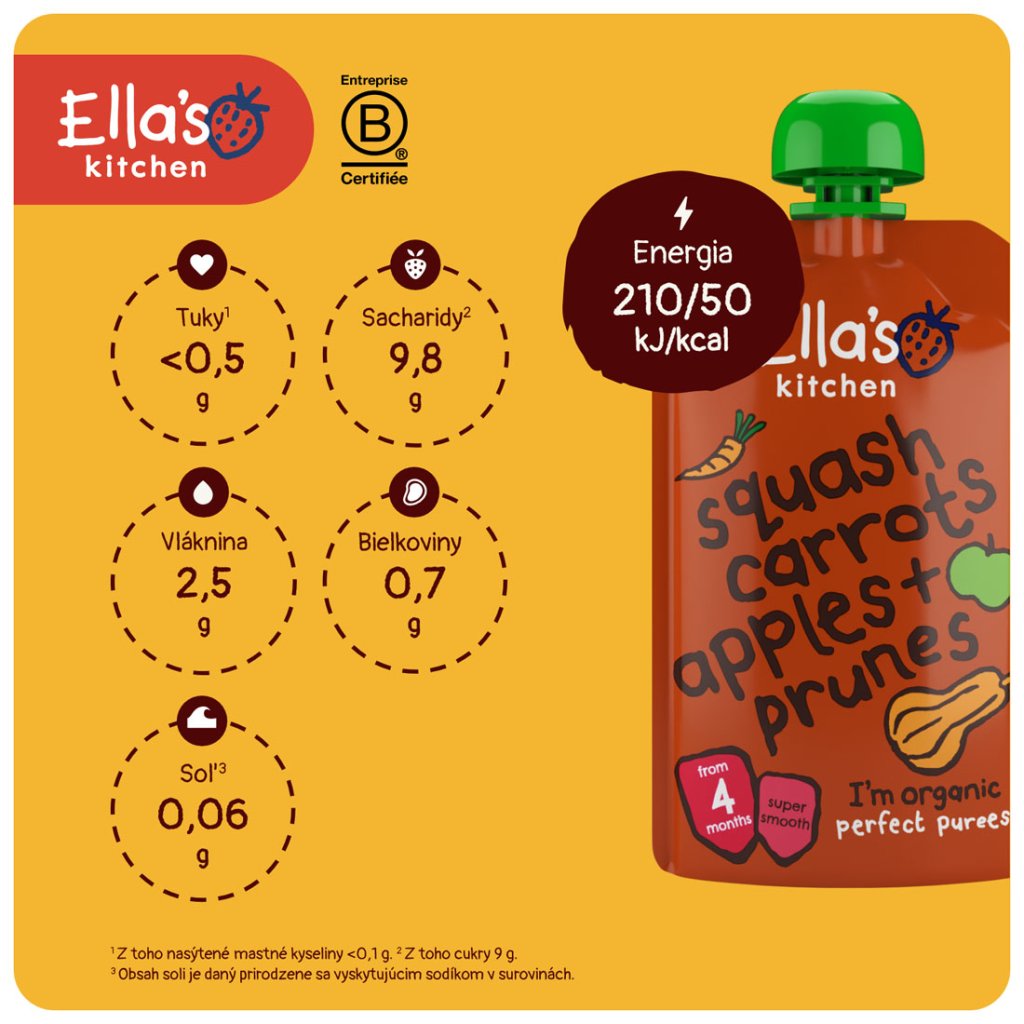 Výrobca: Ella’s Kitchen Ella’s Barn, 22 Greys Green Farm Rotherfield Greys Henley-on-Thames RG9 4QG, Veľká Británia. Oficiálny distribútor: Health Academy, s.r.o., Zbraslavská 22/49, 159 00, Praha, Česká republika.